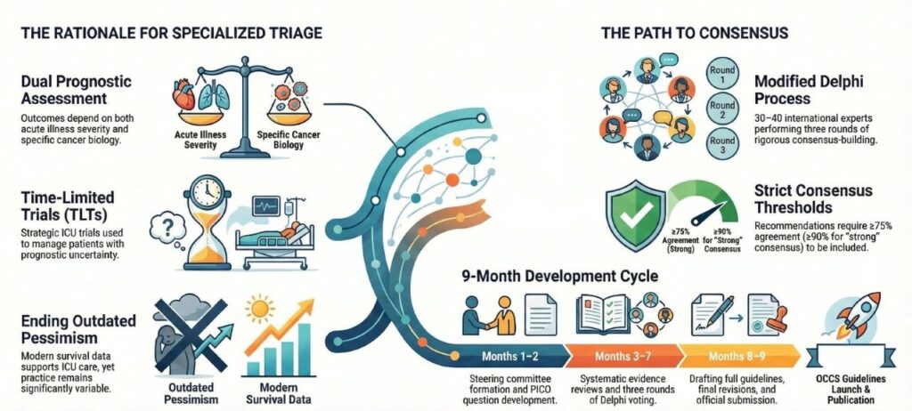 First‑ever evidence‑based, consensus‑driven recommendations for admission, triage, and discharge of cancer patients in the ICU – moving beyond the outdated “cancer vs. no cancer” dichotomy.